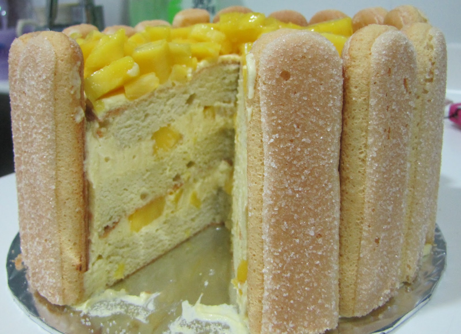 My boyfriend had guests coming to his place yesterday and wanted a cake. I had to break away from all that fondant work, decided to go back to the basics coz my shoulders are aching from doing all the kneading and the rolling of fondant, I decided to just make a simple fresh cream cake. Having an excess of mangoes and mango puree, a mango charlotte cake it would be! It was a mango sponge cake with mango whipped cream filled with fresh mangoes. Glad that his guests loved the cake :)